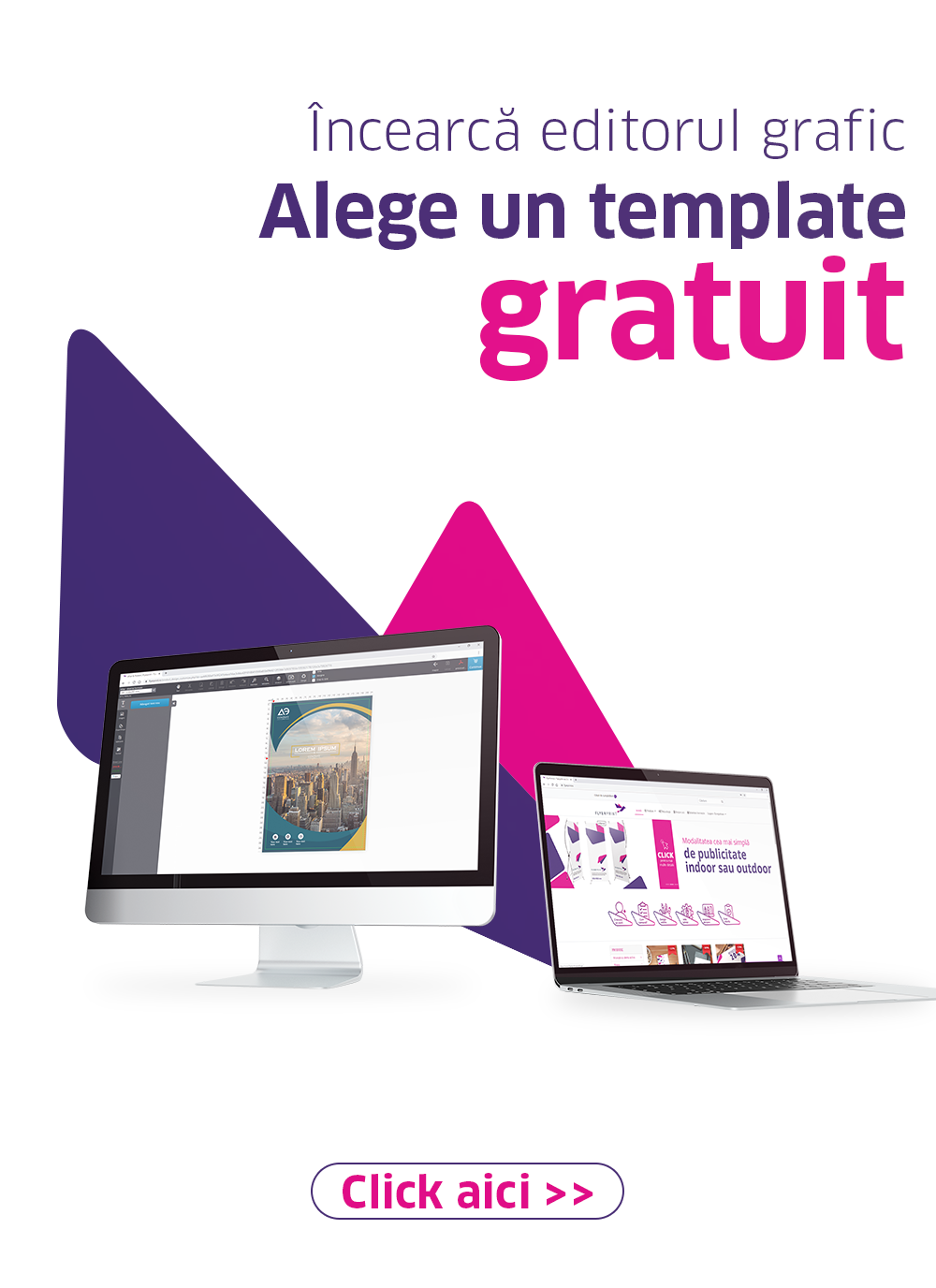 Descarcă un șablon ajutător potrivit dimensiunii și orientării pe care o dorești, adaugă designul și trimite fișierul la noi pentru a fi tipărit.